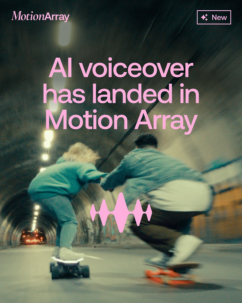 모션 어레이(Motion Array)는 다양한 크리에이티브 콘텐츠 제작에 필수적인 템플릿, 배경음악, 음향효과, 스톡 영상 등을 제공하는 플랫폼입니다. 여러 플랫폼에 가입할 필요 없이 한 곳에서 해결할 수 있다는 장점이 있습니다. AI 음성 내레이션 기능인 보이스 오버(Voice Over)가 추가되어 더욱 완성도 높은 콘텐츠를 제작할 수 있습니다.