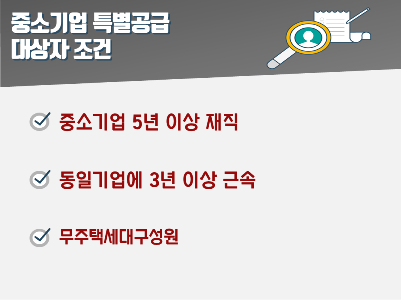 중소기업 특별공급의 기본조건은 해당 요건을 갖춘 기업에서 5년 이상 근무한 경력이 있어야 한다는 것이다. 이때, 이직하지 않고 같은 회사에서 3년 이상 근무한 경우에도 동일하며, 휴직을 한 경우에도 근무했음을 입증할 수 있는 경우에는 동일한 혜택을 받을 수 있습니다. 직전 기간을 포함하여 총 5년간 이 제도는 이들 계층이 대기업이나 공기업에 비해 복지가 열악해 주택 구입 기회가 적다는 점을 감안해 도입됐다. 그러나 여기에도 예외가 있습니다. 회사의 조건을 충족하더라도 임원으로 등록한 경우에는 해당되지 않으니, 신청 전 꼭 참고하시기 바랍니다.