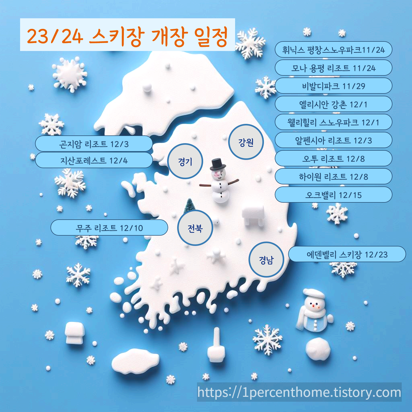 2023년 2024년 스키장 지역별 개장일 종합일정