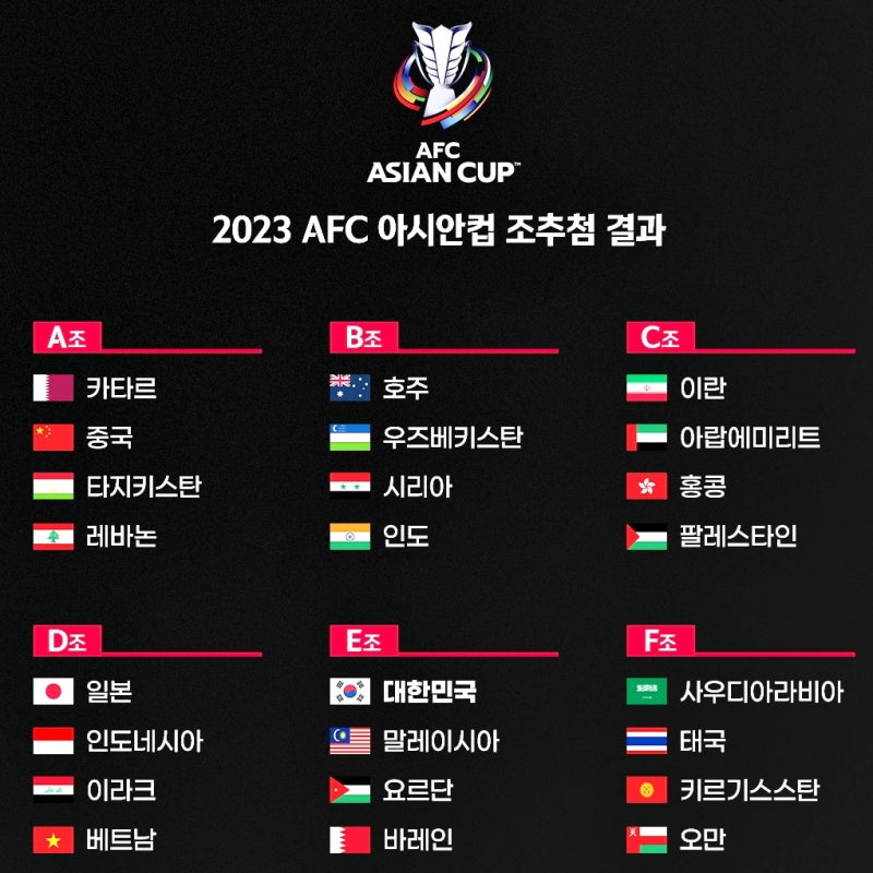 오늘 포스팅의 주제는 2023 AFC 아시안컵 결승전 조 편성과 경기일정 앱 캘린더 설정 및 역대 우승팀에 관한 내용입니다. 내가 어제 말하지 않았나요? 지인으로부터 2023 AFC 아시안컵 조별리그 일정표를 받았습니다!